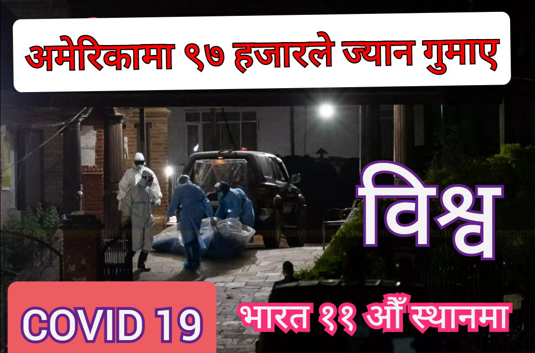जेठ १०, काठमाण्डौ । विश्वव्यापी महामारीको रुपमा फैलिएको कोरोना भाइरस (कोभिड १९) को कारण हालसम्म विश्वभर ३ लाख ३८ हजार ३० जनाको मृृृृृत्यु भएको छ । त्यसैगरी वल्डोमिटरको तथ्यांकअनुुुुसार विश्वभर ५२ लाख ६५ हजार जनामा कोरोना संक्रमण फैलिएको छ ।