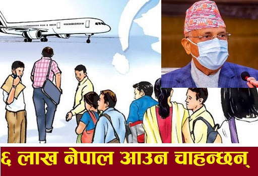 कोरोना भाइरस प्रभावका कारण विभिन्न मुलुकमा रहेका झण्डै ६ लाख बढी नेपाली स्वदेश फर्किन चाहेका छन् । खाडी मुलुकमा ६ वटा देशमा १६ लाख नेपाली कामदार रहेका छन् । त्यसैगरी दक्षिण कोरिया, जापान, इरान, कतार, यूएई, मलेसिया, इजरायल, साउदी अरेबिया, कुवेतलगायतका देशमा कोरोनाको संक्रमण बढ्दै गएपछि नेपाली कामदार प्रभावित भएका छन् ।