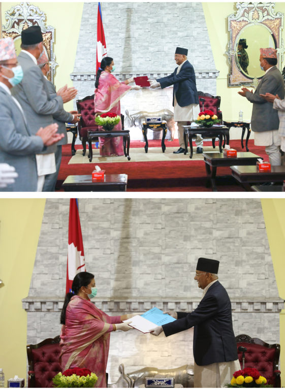 संवैधानिक व्यवस्थानुरुप प्रधानमन्त्री ओलीले प्रस्तुत गर्नुभएको गत आव २०७५।०७६ को नेपाल सरकारको वार्षिक प्रतिवेदन र सुरक्षा परिषद्को कामकारवाहीसम्बन्धी छुट्टाछुट्टै प्रतिवेदन बुझ्दै राष्ट्रपति भण्डारीले प्रतिवेदनमा उल्लिखित विषयको प्रभावकारी कार्यान्वयनमा सरकार सक्षम हुने विश्वास व्यक्त गरिन् ।