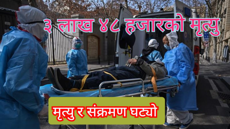 जेठ १३, काठमाण्डौ । विश्वव्यापी महामारीको रुपमा फैलिएको कोरोना भाइरस (कोभिड १९) को कारण हालसम्म विश्वभर ३ लाख ४८ हजार ३ सय २३ जनाको मृृृृृत्यु भएको छ । त्यसैगरी वल्डोमिटरको तथ्यांकअनुुुुसार विश्वभर ५५ लाख ८ हजार जनामा कोरोना संक्रमण फैलिएको छ ।