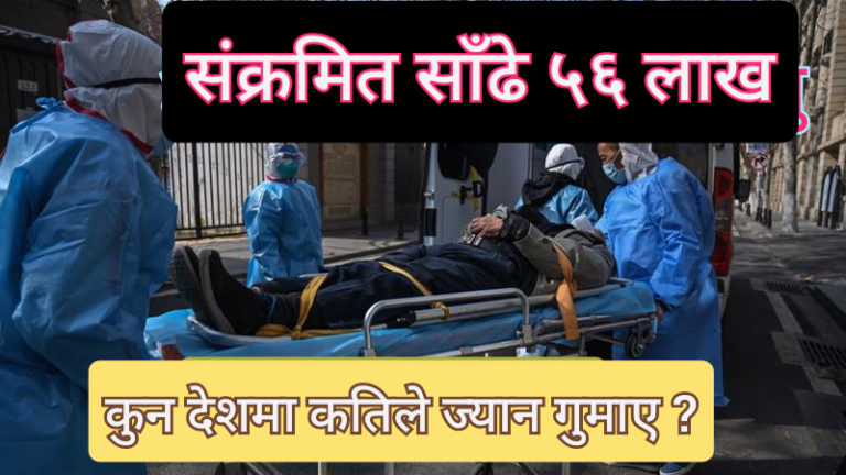 विश्वभर भने ३ लाख ५० हजारको मृृृृृत्यु भएको छ । त्यसैगरी वल्डोमिटरको तथ्यांकअनुुुुसार विश्वभर ५६ लाख ४५ हजार जनामा कोरोना संक्रमण फैलिएको छ ।