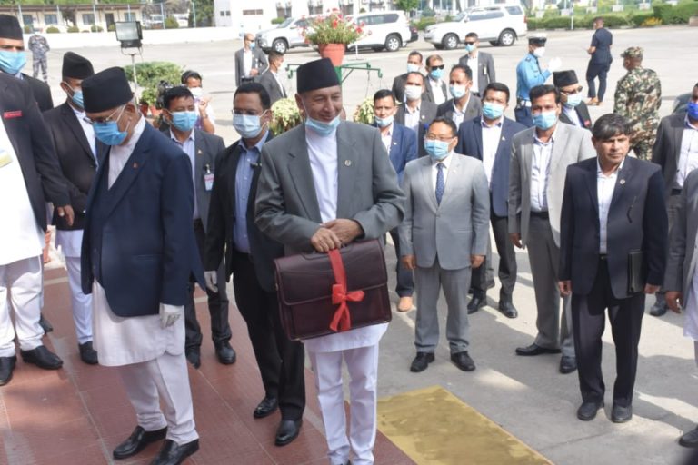 काठमाडौं, १५ जेठ । अर्थमन्त्री डा युवराज खतिवडाले आर्थिक वर्ष २०७७/७८ को राजश्व र व्ययको वार्षिक अनुमान (बजेट) प्रस्तुत गरेका छन् । कोराना सङ्क्रमणको महामारीका बीच समाजिक दूरी कायम गरी व्यवस्थापन गरिएको सङ्घीय संसद्को संयुक्त बैठकमा मन्त्री खतिवडाले आज बजेट प्रस्तुत गरेका हुन् ।