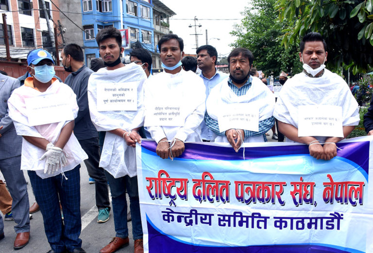 राष्ट्रिय दलित पत्रकार संघ, नेपालका पदाधिकारीहरुले आज सरीरमा कात्रो कात्रो र दुवै हात बाँधेर सरकार अँध्यारोमा कहाँ छ, उज्यालो यहाँ छ भन्ने नारासहित विरोध प्रदर्शन गरेको हुन् । उनीहरुले पाँच जनाको हत्या र एक जना बेपत्ता पारिएको उक्त घटनाका दोषीलाई कानुनबमोजिम कारबाहीको माग गरेका छन् ।