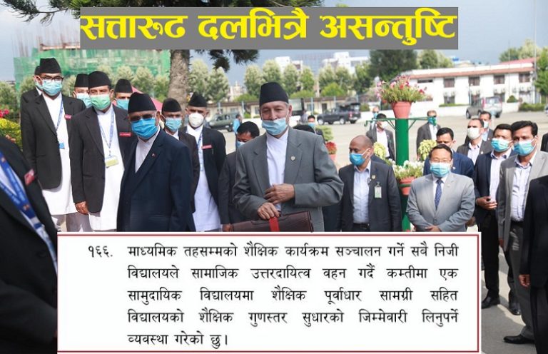 माध्यमिक तहसम्मको शैक्षिक कार्यक्रम सन्चालन गर्ने सबै निजि विद्यालयले सामाजिक उतरदायित्व बहन गर्दै कम्तीमा एक सामुदायिक विद्यालयमा शैक्षिक पुर्वाधार सामाग्री सहित विद्यालयको शैक्षिक गुणस्तर सुधारको जिम्मा निजि विद्यालयलाई दिइने विषयले सरोकारवालालाई रुष्ट बनाएको हो ।