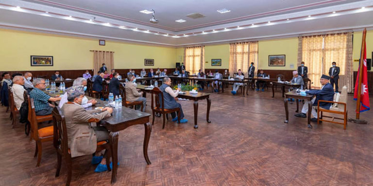 काठमाडौं, २१ जेठ । प्रधानमन्त्री केपी शर्मा ओलीले कोरोना भाइरसको रोकथाम, नियन्त्रण तथा बन्दाबन्दीका अवस्थामा आर्थिक र सामाजिक गतिविधिलाई सहज बनाउने विषयमा आज विज्ञहरुसँग परामर्श गरेका छन् । प्रधानमन्त्री निवास बालुवाटारमा जारी छलफलमा उपप्रधानमन्त्री, परराष्ट्रमन्त्री र स्वास्थ्यमन्त्रीसहित उच्च अधिकारी एवं अर्थ र स्वास्थ्यविज्ञ तथा सामाजिक अभियानकर्मी सहभागी रहेका प्रधानमन्त्रीका प्रेस सल्लाहकार सूर्य थापाले जानकारी दिए।