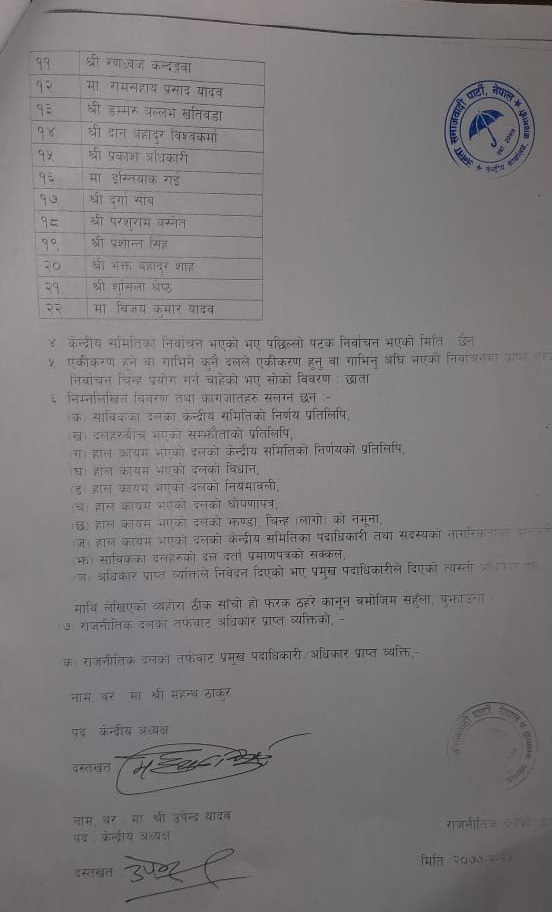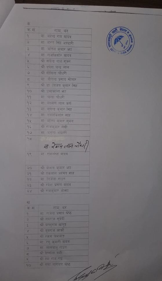 पदाधिकारीसहित केन्द्रीय कमिटिको सुची: