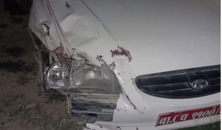 ठक्कर दिएपछि भाग्दै गरेको कार अनियन्त्रित हुँदा साइकल सवार दुई जनाले ज्यान गुमाउनुपरेको प्रहरीले बताएको छ । घाइते मोटरसाईकल सवार दुई जनालाई उपचारकालागि काठमाडौं रिफर गरिएको छ।