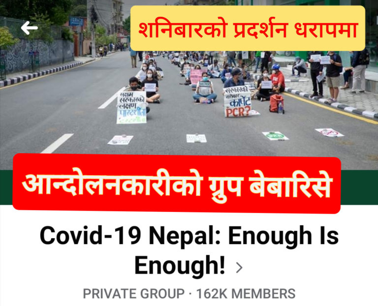 अहिलेसम्म आन्दोलन कसले गरेको भनेर सरकारले पत्तो लगाउन सकेको छैन । तर सामाजिक संंजालमा एउटा ग्रुुप (covid-19 nepal: enough is enough!) बनाइएको छ । ग्रुुपमा सदस्य रहेका फेसबुुक प्रयोगकर्ताहरुले आन्दालनको समर्थन गरिरहेेेका थिए ।