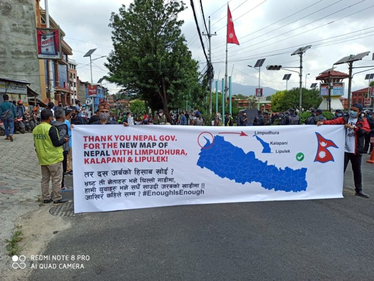 काठमाडौं, ३१ जेठ । सरकारको विरोधमा आज (शनिबार) माईतीघरमा बृहत्त प्रदर्शन हुँदैछ । विहानैदेखि ठूलो संख्यामा प्रहरी परिचालित छन् । माईतीघर आउने चारै दिशाका सडकको मुखमा प्रहरीहरु खटिएका छन् । सरकारको विरोधमा गरिने भनिएको यो विरोध प्रदर्शनमा लिपुलेक, लिम्पियाधुरा र कालापानीसहितका नयाँ अद्यावधिक नक्सासहितको ब्यानर लिएर युवाहरु उत्रिएका छन् ।