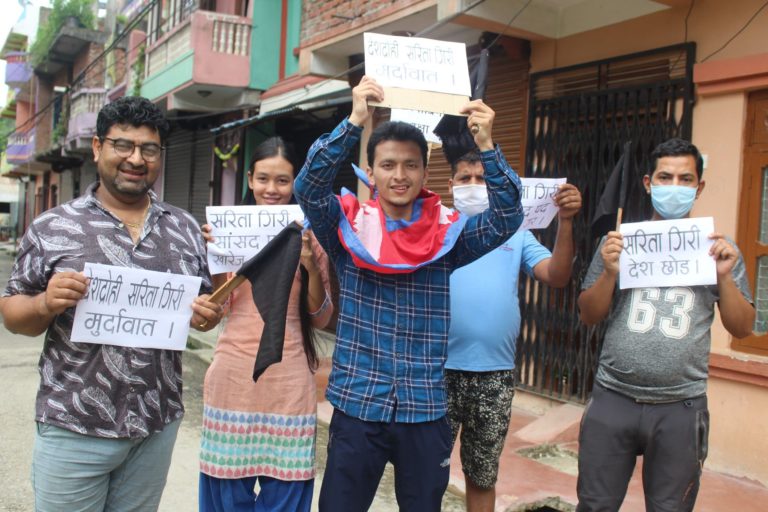 ‘सरिता गिरी देश छोड्’ भन्दै धादिङमा विरोध प्रदर्शन