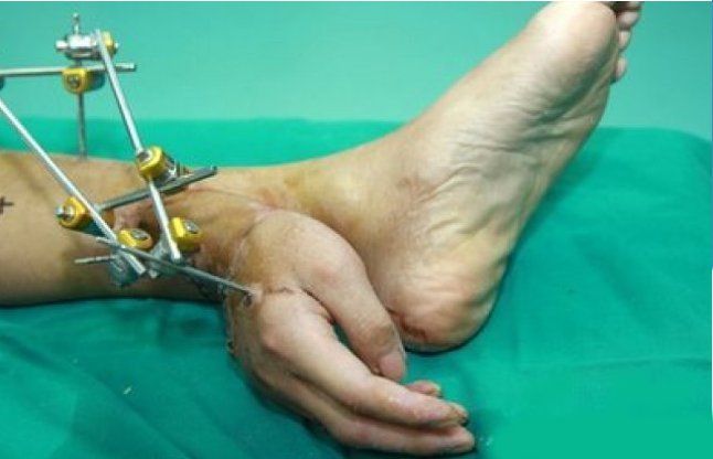 घटना भएको १ महिनापछि डाक्टरको टिमले अपरेशन सुरु ग¥यो र हातलाई खुट्टामा जोडिदिए । डाक्टरहरुले दुई हड्डीलाई तारले जोडेर नशालाई रिपेयर गरेका छन् । एजेन्सी