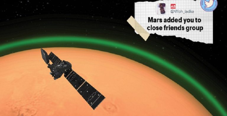 अनौठो प्रकारले घेरिएको मंगल ग्रहको तस्बिर सामाजीक सञ्जालमा निकै प्रख्यात भएको छ । पृथ्वीपछि पहिलो ग्रहमा यस्तो प्रकारका रङ देखा परेको जनाइएको छ । मंगल ग्रहको वातावरणमा उपस्थित अक्सिजन परमाणु का-कारण ग्रहलाई हरियो रङले घेरेको एक्सो मार्स ट्रेस ग्याँस ओर्बिटरले पत्ता लगाएको हो । अन्तराष्ट्रिय अन्तरीक्ष स्टेशन (आइएसएस) बाट पृथ्वीको वरिपरि विगतमा त्यस्तै प्रकारको हरियो रङको चमक देखापरेको थियो ।
