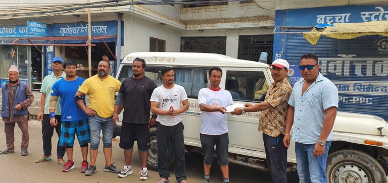 समाजसेवी उमेश बानियाँद्वारा चाङ्गथली युवा क्लबद्वारा सञ्चालित एम्बुलेन्स चालकलाई बिमा