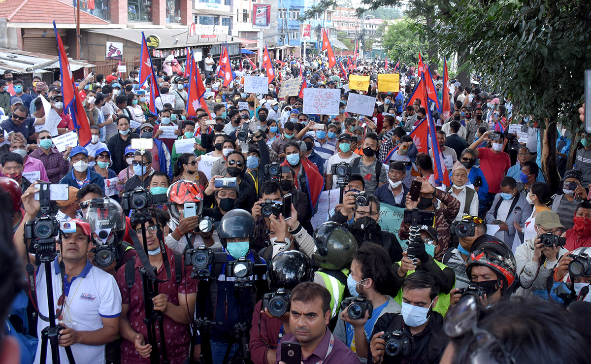 मुकुन्द कालिकोटे : काठमाडौं १३ आषाढ । माईतिघर मण्डलामा आज भएको संयुक्त आन्दोलनमा ज्ञानेन्द्र शाहीलाई राष्ट्रघातीबाट परिचालित छौंडाको आरोप लागेको छ । विभिन्न संघ–संस्थाहरु मिलेर गरिएको विरोध प्रदर्शनमा शाहीले एकलौटी कब्जा जमाएपछि शाहीलाई अन्य संघ–संस्थाका प्रदर्शनकारीहरुले शाहीलाई राष्ट्रघातीबाट परिचालित छौंडाको आरोप लगाएका हुन् ।