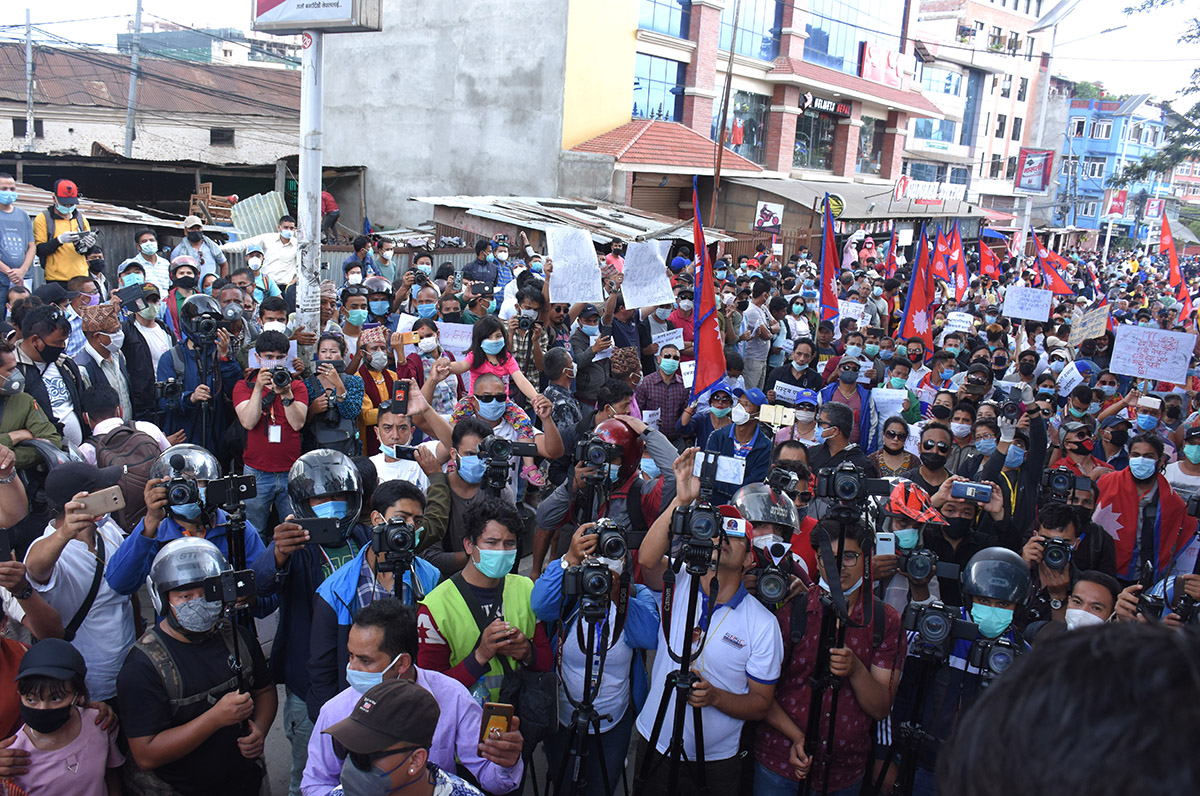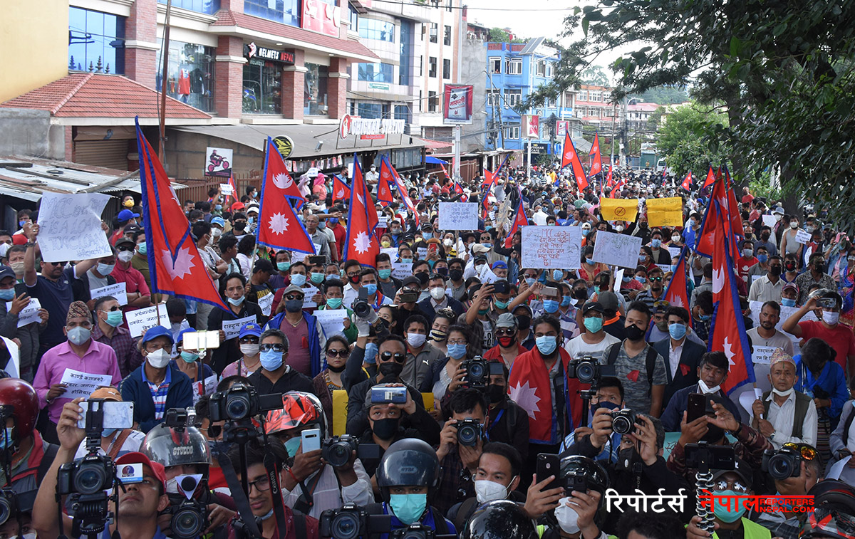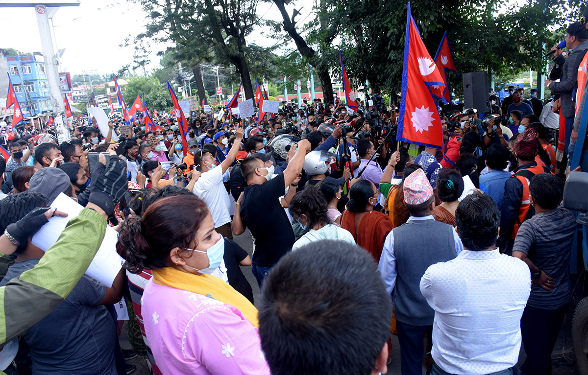 मुकुन्द कालिकोटे : काठमाडौं १३ आषाढ । माईतिघर मण्डलामा आज भएको संयुक्त आन्दोलनमा ज्ञानेन्द्र शाहीलाई राष्ट्रघातीबाट परिचालित छौंडाको आरोप लागेको छ । विभिन्न संघ–संस्थाहरु मिलेर गरिएको विरोध प्रदर्शनमा शाहीले एकलौटी कब्जा जमाएपछि शाहीलाई अन्य संघ–संस्थाका प्रदर्शनकारीहरुले शाहीलाई राष्ट्रघातीबाट परिचालित छौंडाको आरोप लगाएका हुन् ।