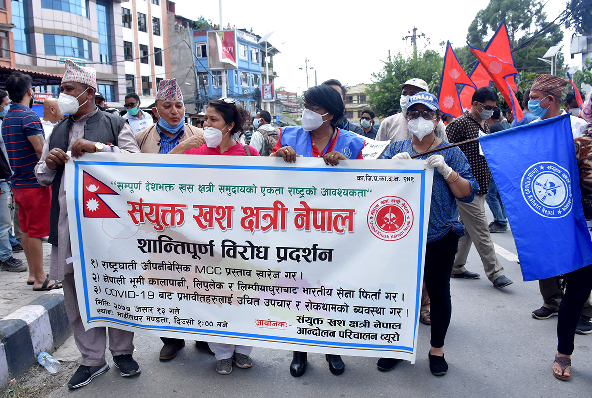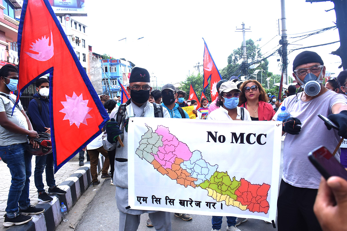 विरोध प्रदर्शन शान्तिपूर्ण, भाषणविहीन, सामाजिक दूरी कायम गर्दै बसेर एमसीसी विरोधका नारामात्र लगाउने सहमति भएकोमा शाहीले आफ्नो वरी–परी बडीगार्ड राखेर कार्यक्रमलाई कब्जामा लिएको आरोप लगाउँदै नेपालका लागि नेपाली अभियान, शाही युवा शक्ति, शिव सेना नेपाल, खस क्षेत्री समाजजस्ता सम्मिलित संस्थाका आन्दोलनकारीहरुले शाहीले फेग राष्ट्रवादीको नौटङ्की गरिरहेको आरोप लगाएका हुन् ।