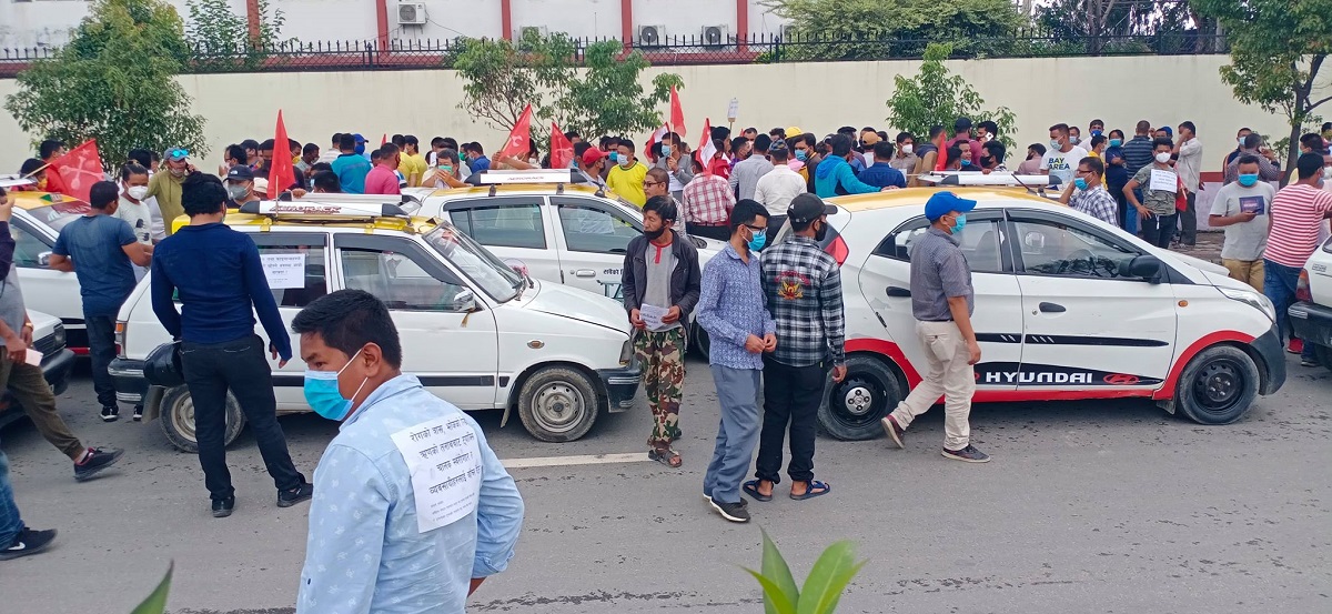 आज ट्याक्सी चालकहरु विहानै सडकमा उत्रिएका छन् । उनीहरुले कि गाँस देऊ कि काम गर्न देऊ भन्दै सडकमा ट्याक्सी उतारेका छन् । सयौंको संख्यामा ट्याक्सी चालकहरु आज बबरमहलमा सवारी साधनसहित निस्किएका हुन् ।