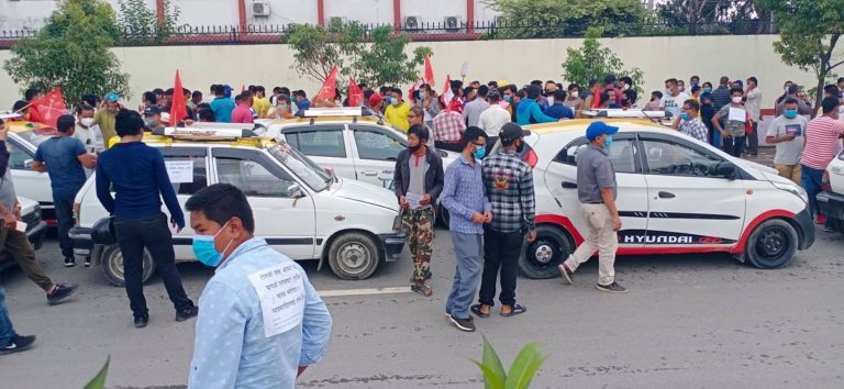 लकडाउनमा रातो प्लेट सञ्चालन हुन दिने तर कालो प्लेट नदिने ? भन्दै यातायात मजदुरहरुले विरोध जनाएका हुन् । अत्यावश्यक सेवा समेत दिदै आएको र बेला बेलामा एम्बुलेन्सको पनि भुमिका निभाउँदै आएको ट्याक्सी सञ्चालनमा रोक लगाएकोमा असन्तुष्टि जनाएका छन् ।