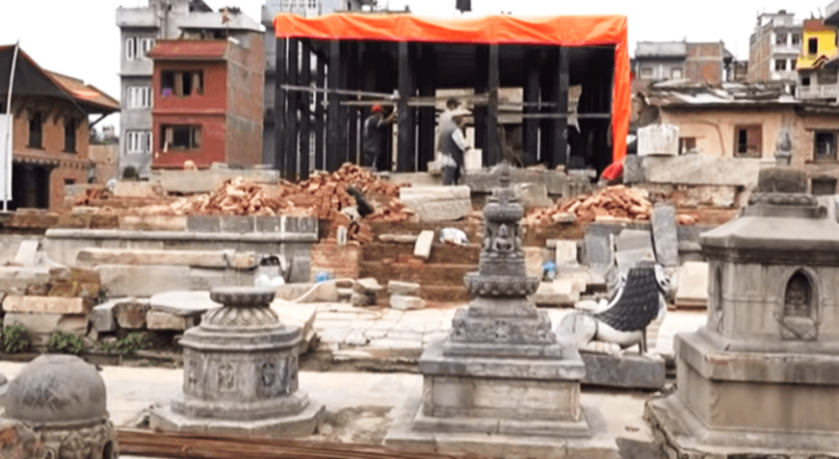 यही असार २० गते शनिबार क्षमा पूजा गरी आजदेखि काम शुरु गरिएको उपभोक्ता समितिका अध्यक्ष अमीर शाक्यले जानकारी दिए । आज मन्दिर परिसरमा छरिएका निर्माण सामग्री मिलाउने र ढुङ्गाका खम्बा एकत्रित गर्ने काम गरिएको छ । उपभोक्ता समितिले सिकर्मी एवं अन्य निर्माणकर्मीसँग छलफल पनि गरेको छ ।