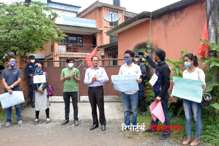 मुकुन्द कालिकोटे : काठमाडौँ। नीजि विद्यालयहरुले विद्यार्थीहरुबाट अनलाइन कक्षाको नाममा शुल्क उठाएको भन्दै अखिल क्रान्तिकारीले प्याब्सनको कार्यालयमा धर्ना दिएको छ। मोहन वैद्य नेतृत्वको नेकपा (क्रान्तिकारी माओवादी)को विद्यार्थी संगठन अखिल क्रान्तिकारीका अध्यक्ष हरिकृष्ण गजुरेलले आफ्ना मागहरुको सुनुवाइ नगरिए सशक्त आन्दोलन गर्ने बताएका छन्।