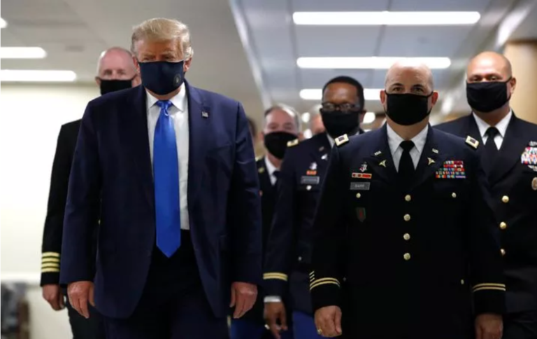 १ लाख ३४ हजार अमेरिकनको मृत्युपछि अमेरिकी राष्ट्रपति डोनाल्ड ट्रम्प पहिलो पटक मास्कसहित देखिएका हुन् । अस्पतालमा धेरै मान्छेसँग भेट हुने र उनीहरुले मास्क लगाओस् भन्ने चाहना व्यक्त गर्ने भएकाले आफूले मास्क लगाएको ट्रम्पले बताएका छन् ।