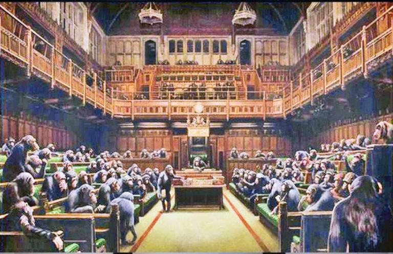 लन्डनको एक पेन्टरले पेन्टिङ गरेको ब्रिटिश संसद ‘हाउस अफ कमन्स’ मा बसेको चिम्पान्जीको तस्वीर सन् २००९ मा सिर्जना गरेका थिए । १३ फिट उचाई भएको उक्त पेन्टिङको सबैजना फ्यान भएका छन् । डेभलप पार्लियामेन्ट नाम छान्न १० मानिस लागेका थिए तर बिक्रि हुन १३ मिनेट पनि लागेन ।