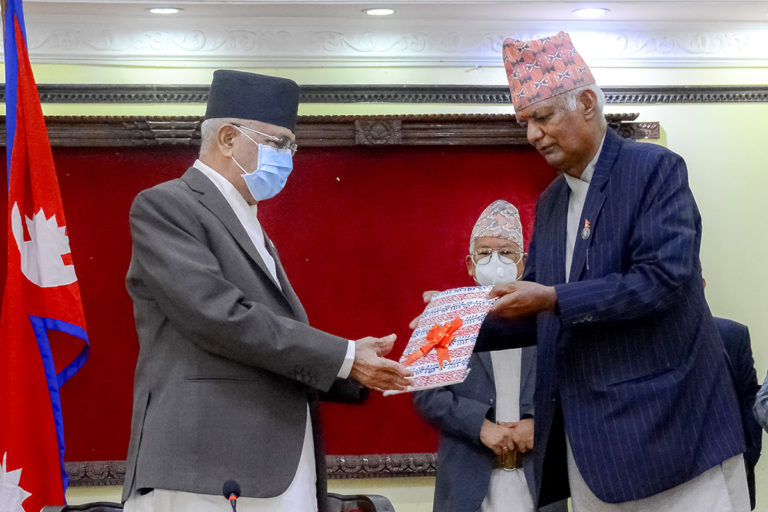 प्रधानमन्त्री ओलीलाई प्रज्ञा–प्रतिष्ठानको वार्षिक प्रतिवेदन हस्तान्तरण