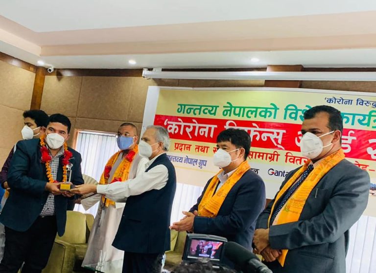 काठमाडौं, २ साउन । गन्तव्य नेपालले कोरोना महामारीसँग जुध्न समाजका विभिन्न क्षेत्रमा क्रियाशील रहेर बिभिन्न क्षेत्रबाट बिभिन्न योगदान पुर्याएका १७ जनालाई कोरोना डिफेन्स अवार्ड २०२० ले सम्मानित गरेको छ । आज नक्साल हात्तीसारस्थित अरण्य बुटिक होटलमा आयोजित अवार्ड वितरण कार्यक्रममा पूर्वप्रधानमन्त्री डा बाबुराम भट्टराई, संघीय सांसद बहादुरसिंह लामा, बोधिसत्व विहारका सुप्रिम मास्टर हेगुवाङ शी, अवार्ड छनोट समितिका संयोजक रामशरण थपलियासँगै गन्तव्य नेपाल ग्रुपका अध्यक्ष शिव अधिकारीले देशभरबाट छनोटमा परेका १७ सामाजिक अभियन्तालाई अवार्ड प्रदान गरे ।
