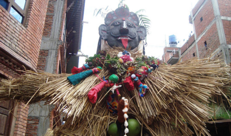 संस्कृतिविद् तेजेश्वरबाबु ग्वङ्गका अनुसार छ्वालीले बाँधेर उभ्याइएको नर्कटको त्रिखुट्टी सहितको भयंकरको यो प्रतीक चौबाटोमा यसै दिन मात्र देख्न पाइन्छ । साँझपख यसलाई बालेर खेतबारीको बीचमा राख्दा धानको बालामा लाग्ने कीरा मारेर धानमा लाग्ने रोग हटाउने भएकाले त्यतिबेला यस प्रकारको उपचारात्मक क्रियाकलाप भएको उहाँ बताउनुहुन्छ ।