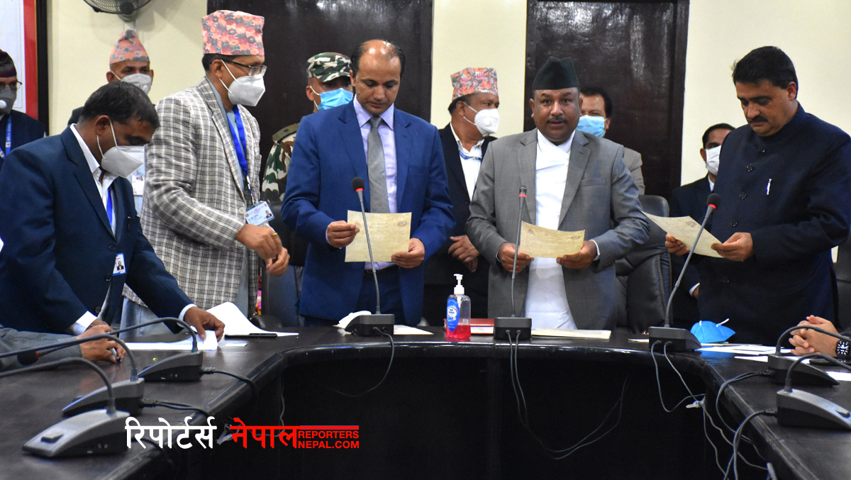 काठमाडौं, , १४ साउन। राष्ट्रिय खेलकुद परिषद (राखेप) का नवनियुक्त उपाध्यक्ष शिव कोइराला र सदस्य सचिव रमेश कुमार सिलवालले पद तथा गोपनीयताको शपथ लिएका छन् । बुधबार सिंहदरबारस्थित् युवा तथा खेलकुदमन्त्री जगतबहादुर विश्वकर्माबाट उपाध्यक्ष कोइराला र सदस्य सचिव सिलवालले शपथ लिएका हुन् ।