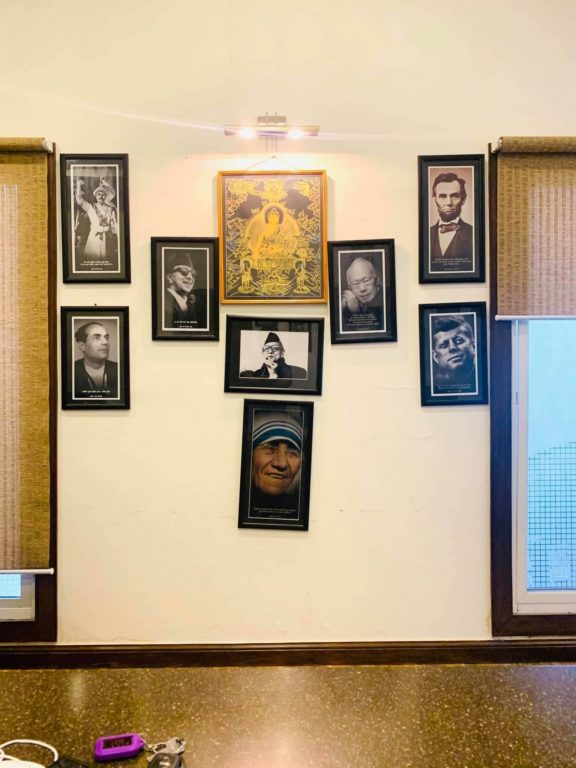 उनको भित्तामा कम्युनिष्ट नेताको तस्बिर झुण्डिने नै भयो । तर, गैर कम्युनिष्टको पनि रहेको छ । जसमध्ये महात्मा गान्धी, अब्राहम लिंकन र जोन एफ केनेडीको पनि हुन् ।