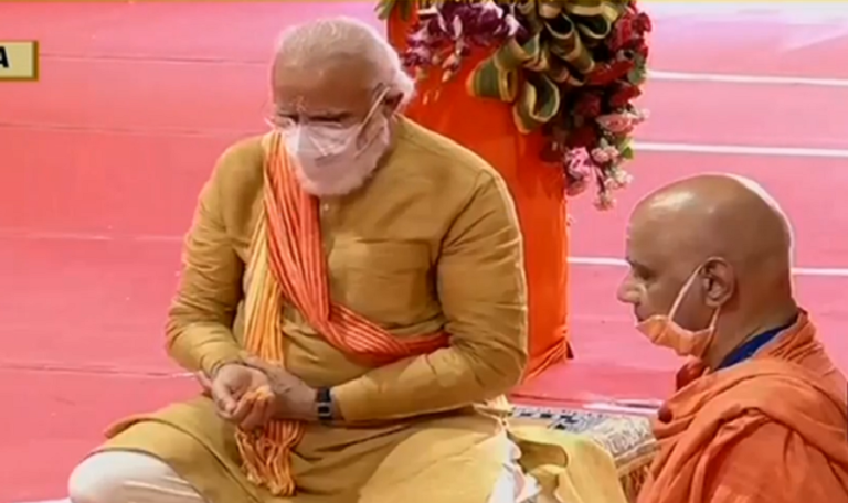 पुजामा अतिथिका रुपमा १७५ जना मात्र सहभागी थिए । भारतमा बाबरी मस्जिद भत्काइएको स्थानमा अदालतको आदेश अनुसार मन्दिर निर्माण शुरु भएको हो । हिन्दुहरुले झण्डै पाँच सय वर्ष अघि राम मन्दिर भत्काएर बाबरी मस्जिद बनाइएको भन्दै विरोध गर्दै आएका थिए ।