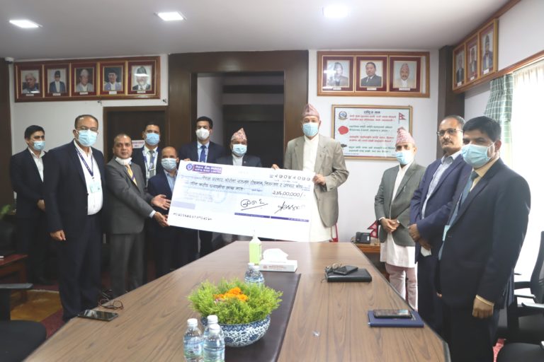 काठमाडौं, २९ साउन । नेपाल बैंक लिमिटेडले बैंकको संस्थागत सामाजिक उत्तरदायित्व कोषमा मौज्दात रहेको रु. ३ करोड ४६ लाख रकमको चेक नेपाल सरकारले स्थापना गरेको कोरोना संक्रमण रोकथाम, नियन्त्रण र उपचार कोषमा जम्मा गरेको छ । उक्त रकम अर्थमन्त्री डा.युवराज खतिवडालाई बैंक सञ्चालक समितिका अध्यक्ष वासुदेव अधिकारीले हस्तान्तरण गरेका हुन् ।