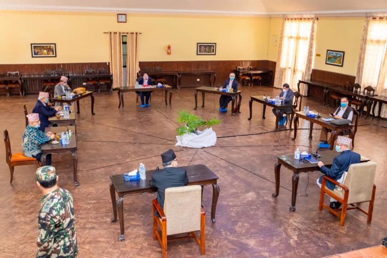 यसअघि प्रधानमन्त्री निवास बालुवाटारमा बसेको बैठकले पार्टी विवाद समाधानको खाका बनाउन गठन गरेको कार्यदलको बारे गम्भीर छलफल गरेको थियो । पार्टीभित्र दुई अध्यक्ष केपी शर्मा ओली र पुष्पकमल दाहाल प्रचण्डको निर्णयले मात्र कार्यदल गठन गरेको भन्दै आलोचना भएपछि सचिवालयबाट निर्णय गराएर अनुमोदन गरेको हो । महासचिव विष्णु पौडेलको संयोजकत्वमा गठित कार्यदलमा स्थायी कमिटी सदस्यहरु भीम रावल, सुरेन्द्र पाण्डे, शंकर पोखरेल, जर्नादन शर्मा र पम्फा भुषाल छन् ।-Photo Source: PM Secretariat