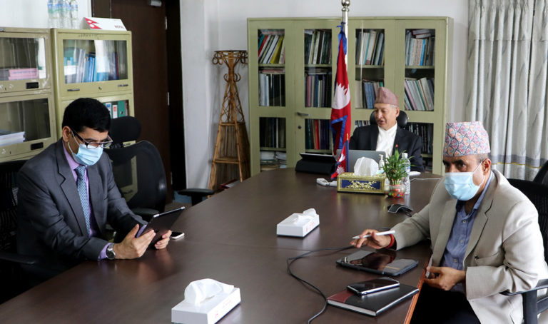 काठमाडौं, ५ भदौ । अर्थमन्त्री डा. युवराज खतिवडा र विश्व बैकका दक्षिण एशिया क्षेत्रका उपाध्यक्ष हार्टविग सेफरबीच विश्वभर फैलिएको कोरोना भाईरसले नेपालको अर्थतन्त्र, स्वास्थ्य क्षेत्र र जनजीवनमा पारेको एवं थप पार्न सक्ने प्रभाव, कोभिड –१९ रोकथाम तथा नियन्त्रणमा नेपाल सरकारले हालसम्म चालेका कदमहरु तथा विश्व बैकको सहयोगमा सञ्चालित आयोजनाहरुबारे आज भिडियो कन्फरेन्स मार्फत छलफल भएको छ ।