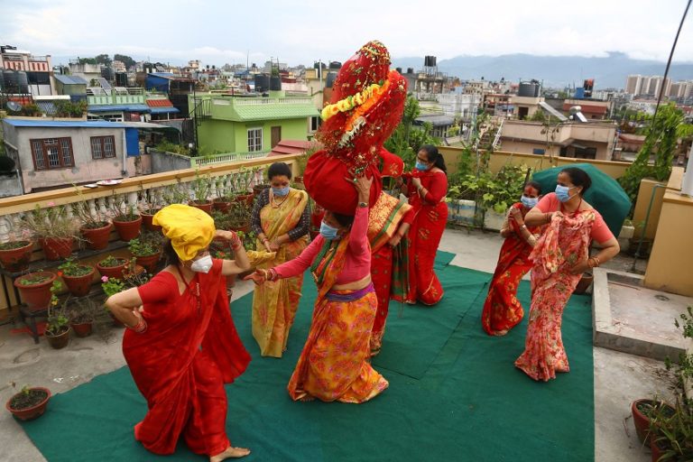 काठमाडौँ १० भदौँ: गौरा पर्वको अवसरमा काठमाडौँको शङ्खमुलमा गौरा नाच गर्दै वर्तालु साथै कञ्चनपुरको भीमदत्तनगरपालिका–१८ कटानस्थित गौरादेवी मन्दिरमा बुधबार गौरा पर्व मनाउँदै स्थानीय महिलाहरुको केहि तस्बिरहरु । (कोभिड– १९) का कारण काठमाडौँ उपत्यकामा निषेधाज्ञा जारी रहेकाले आफ्नै घरमा पूजाआजा र नाचगान गरी पर्व मनाइएका छन् भने कञ्चनपुरको भीमदत्तनगरपालिका कोरोनाको जोखिम रहे पनि यहाँ छिटपुट रुपमा गौरा मनाइरहेका छन् ।