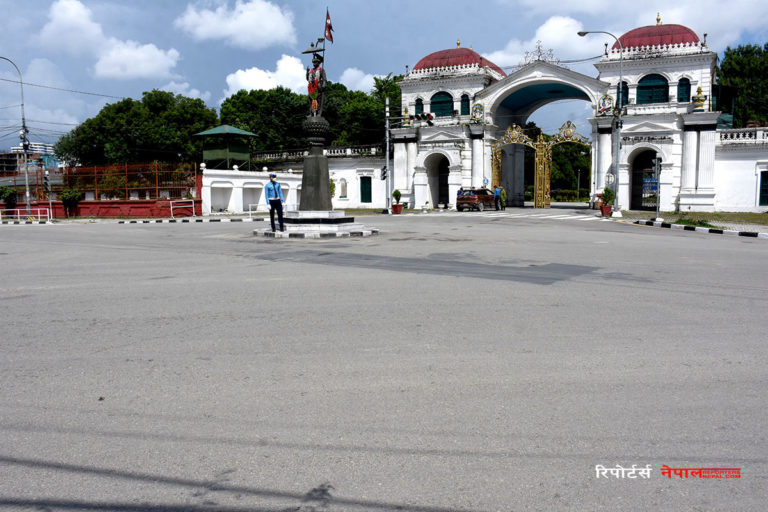 विहान ९ बजेसम्म खाद्यान्न, फलफूललगायतका पसलहरु मात्रै खोल्न दिईएको छ । निषेधाज्ञाको आज आठौं दिन सिंहदरबार वरिपरि यस्तो देखियो । हाम्रा सहकर्मी मुकुन्द कालिकोटेले कैद गरेका तस्विरहरु हेर्नुहोस: