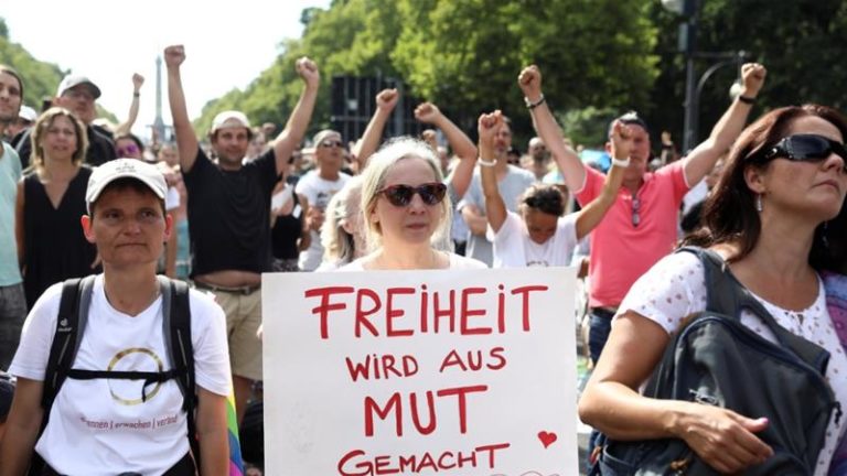 कोरोना रोकथामका नाममा सरकारले अव्यवहारिक प्रतिबन्ध कायमै गरेको भन्दै जर्मनीको राजधानी बर्लिनमा दुई समूहले आयोजना गरेको प्रदर्शनमा ६८ हजारभन्दा बढी मानिस सहभागी भएको बीबीसीले जनाएको छ ।