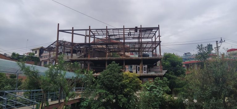 काठमाडौं, १४ भदौ । काठमाडौको अनमानगरस्थित धोबीखोलाको किनारामा हरि चाम्लिङले मापदण्ड रातारात भवन निर्माण गरिरहेका छन् । निषेधाज्ञाको मौका छोपेर चाम्लिङले धोबिखोला करिडोरको बाटोमा छोड्नु पर्ने बाटोको भाग नछोडि अक्सिडेन्टल स्कुल नजिकै रहेको जग्गामा भवन बनाइरहको पाइएको छ ।