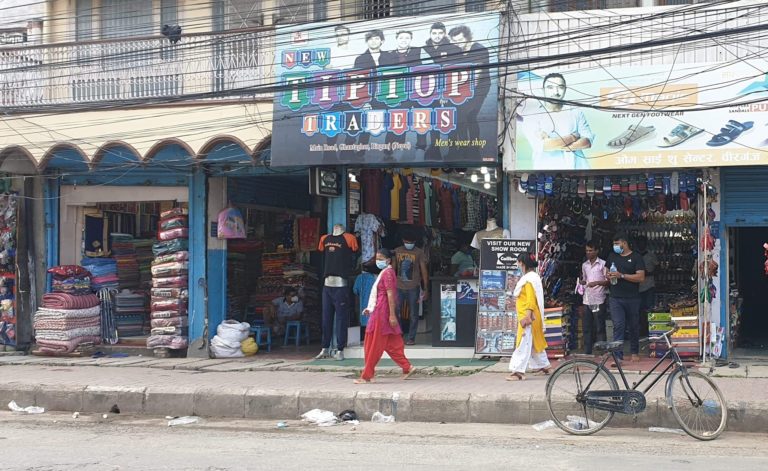 तस्वीरः आज पूर्वतर्फ र दक्षिणतर्फ फर्केका पसलहरु खुले भने पश्चिमतर्फ र उत्तरतर्फ फर्केका पसलहरु बन्द भए ।