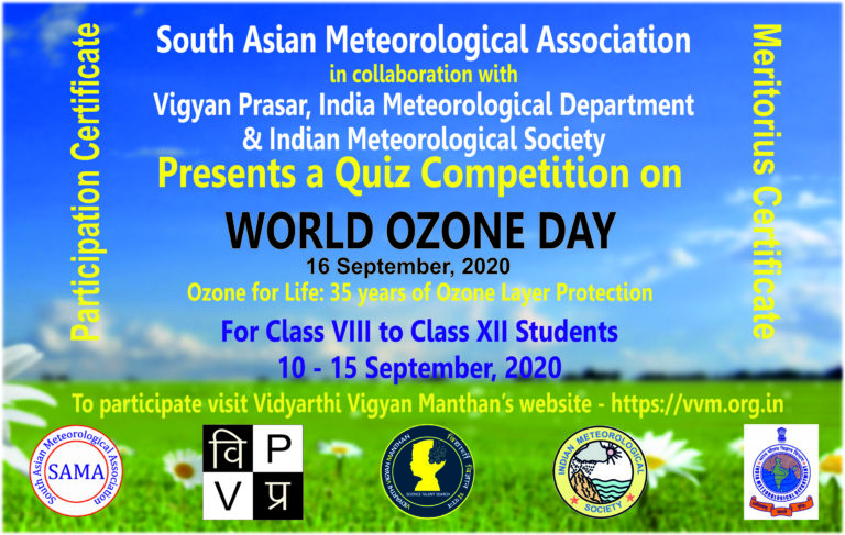 काठमाडौं, २२ भदौ । दक्षिण एसियाली मौसमविदहरुको समाज, साउथ एसियन मेटेरोलोजिकल एशोसियसन (सामा) को विशेष आयोजना र भारतीय मौसम विज्ञान विभाग (इन्डियन मेटेरोलोजिक विभाग साथै भारतीय मौसमबिद समाज र विज्ञान प्रसारको सहकार्यमा विश्व ओजोन दिवस, सेप्टेम्बर १६ को उपलक्ष्यमा माध्यमिक र उच्च माध्यमीक विद्यालय स्तरिय ओजोन सम्बन्धी हाजिरी जवाफ प्रतियोगिता हुने भएको छ ।
