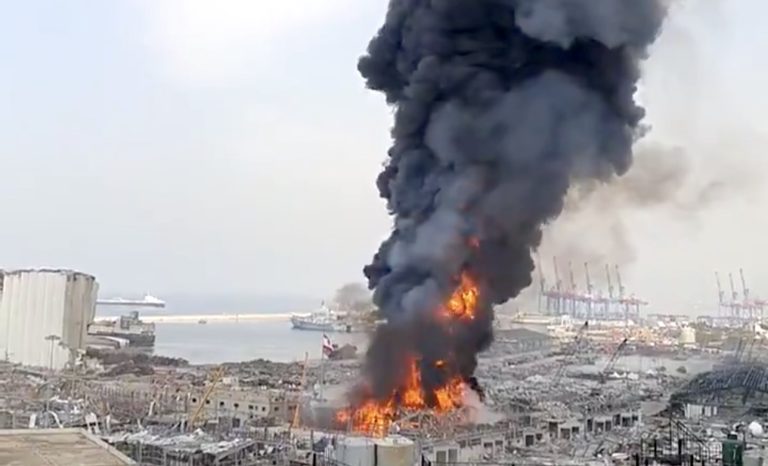 बेरूतको बन्दरगाहमा नजिकै ‘ठूलो आगलागी’