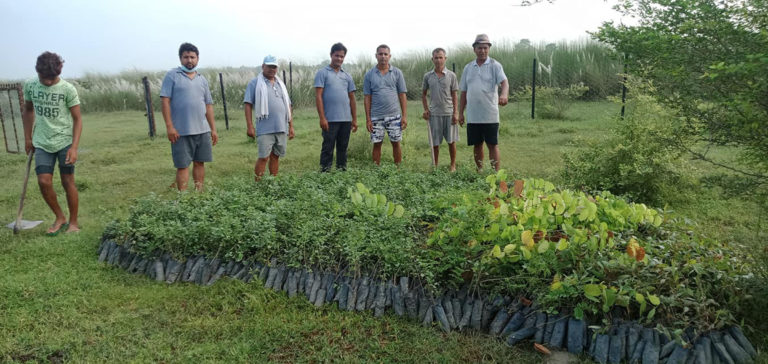 टीकापुर, २७ भदौ : कैलालीको टीकापुर–७ स्थित मोहना नदीले बगर बनाएको जमिनमा वृक्षरोपणका लागि स्थानीयवासीसहित बिरुवा । नेपाल–भारत सीमा क्षेत्रमा रहेको बगर संरक्षणका लागि चार हजार ५०० बिरुवा रोपिएका छन् । तस्वीर : दुर्गा देवकोटा/रासस