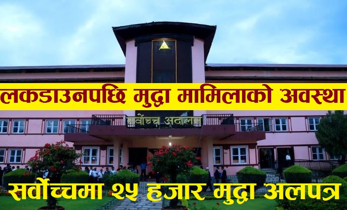 विश्वव्यापी रूपमा देखिएको कोरोनाभाइरसको जोखिमलाई मध्यनजर गर्दै गत चैत ९ गतेबाट अदालतका अधिकांश सेवाहरू प्रभावित भएका छन् । नेपालको इतिहासमा नै १९ जना न्यायाधीशहरू बसेर गरेको यो पहिलो फैसला हो । सर्वोच्च अदालतमा हाल झण्डै २५ हजार मुद्दा विचाराधीन रहेका छन् । लकडाउनभन्दा अघि दैनिक ४ सय देखि पाँच सय मुद्दा पेशीमा चढ्ने गरेको थियो । तर अहिलेको अवस्थामा न्यायिक निकाय अदालतले मुदा फछ्यौट गर्ने कार्य ढिला न्यायको लागि अदालत पुगेका नागरिकहरुलाई समस्या परेको गुनासो गर्छन् ।