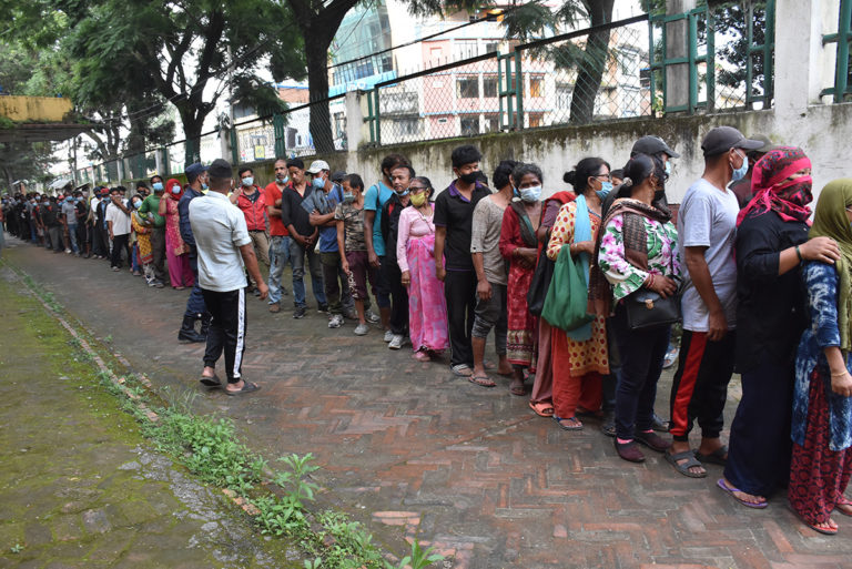 संयोजक यादव भन्छन्– कोरोना भाईरसको यो मारमा दैनिक ज्यालादारी गरी खाने समुदायहरुले लकडाउन या निषेधाज्ञा हटे पनि रोजी रोटी पाएको अवस्था छैन, हाम्रो उद्देश्य भनेको कोरोना कसैलाई नलागोस्, कोही नमरुन र भोकै कोही नबसुन भन्ने नै हो । त्यसैले खाना वा राहत वितरण गर्दा पनि सकेसम्म सामाजिक दूरी कायम गर्ने माक्स नहुनेहरुलाई माक्स दिने र खाना, दाल, तरकारी, खचार नआउञ्जेसम्म माक्स नखोल्न आग्रह गरेर सजगता अपनाईएको छ ।” Photo: Mukunda Kalikote