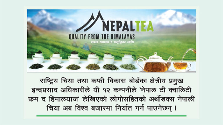 राष्ट्रिय चिया तथा कफी विकास बोर्डका क्षेत्रीय प्रमुख इन्द्रप्रसाद अधिकारीले यी १२ कम्पनीले ‘नेपाल टी क्वालिटी फ्रम द हिमालयाज’ लेखिएको लोगोसहितको अर्थोडक्स नेपाली चिया अब विश्व बजारमा निर्यात गर्न पाउनेछन् । यो ट्रेडमार्क २०७४ चैतमा सार्वजनिक गरिएको थियो ।