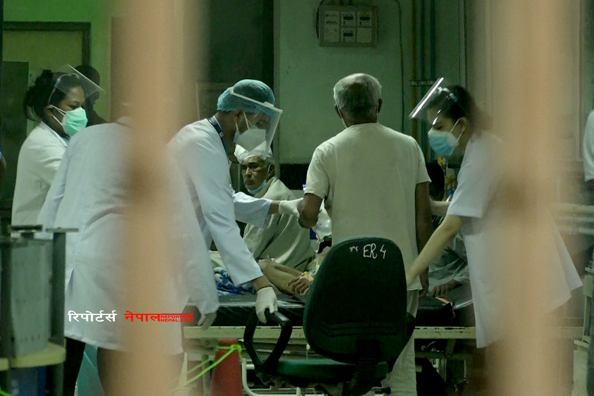 टिचिङमा कोरोना कारण नलैजाने भनेर प्रहरीले भनेको सुनिन्छ । लगत्तै, केसीले जवाफ दिन्छन्,‘तिमीले भन्नुपर्दैन् । म टिचिङ हस्पिटलको डाक्टर होईन ?’ केसीले आफूलाई जबरजस्ती उठाईएपछि आक्रोशित हुँदै भन्छन्,‘ए प्रहरी, तँ जति बलियो छस नि, म त्यति बलियो छु ।’ Photo By: Mukunda Kalikote-ReportersNepal