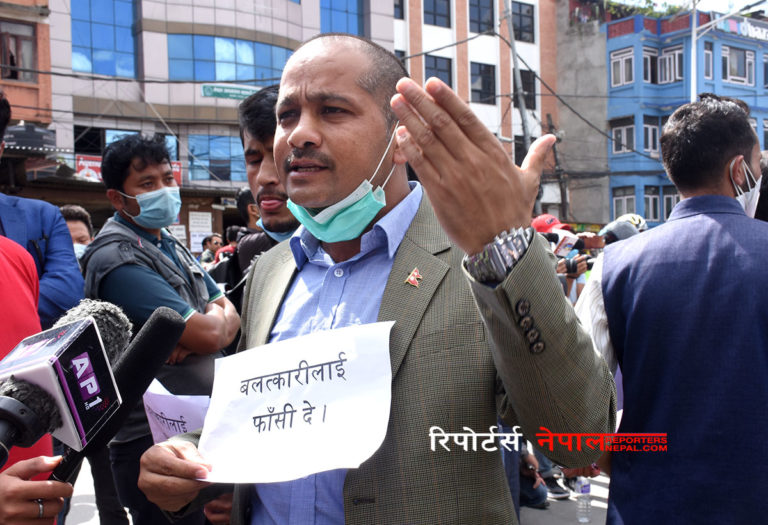 संयोजक महरले सरकारले पछिल्लो समयमा जसरी एसिड प्रहार गर्नेलाई कडा कानुन ल्यायो त्यो राम्रो काम गर्यो, अब सरकारले बलात्कारीहरुलाई पनि फाँसी वा लिङ्ग क्षदन नै हुने कानुन ल्याउनुपर्ने दावी गरे । महरले अपराधीलाई अपराधिकै रुपमा हेरिनुपर्छ, बलात्कारपछि हत्या गर्ने जघन्य अपराधमा मानवअधिकारको प्रश्न उठाएर नहुने भन्दै कानुन बलियो बनाउनुपर्नेमा जोड दिए । उनले भने,‘यस्ता खालका घटनाहरुलाई न्युनिकरण गर्दै सून्यतामा ल्याउनुपर्छ ।” तस्विर : मुकुन्द कालिकोटे/रिपोर्टर्स नेपाल डटकम