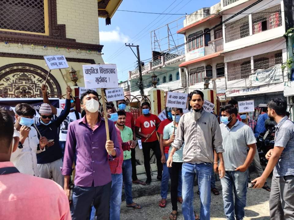 प्रदर्शनकारीहरुले चीनविरुद्ध नाराबाजी गर्दै प्लेकार्डसहित प्रदर्शन गर्दै चीनले अतिक्रमित नेपाली भूमि खाली नगरे प्रदर्शन जारी राख्ने चेतावनी दिएका थिए ।