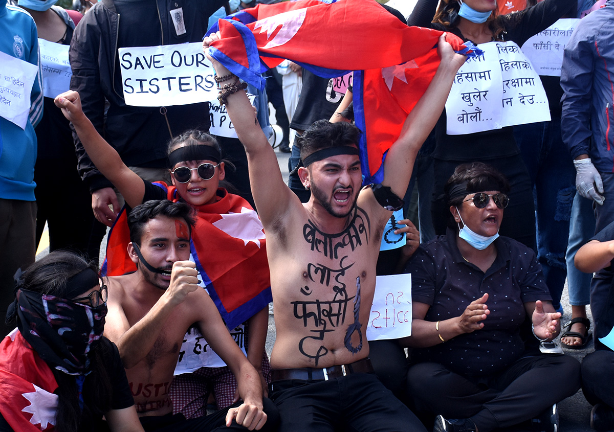 उनीहरुले आफ्नो नांगो शरीरमा जष्टिज फर सम्झना, निर्मला, बलातकारीलाई फाँसी दे जस्ता नारा लेखि शरीरभरी रातो रंग पोतेका थिए । विरोधमा संलग्न प्रदर्शनकारीहरुले ‘बालिका र महिलाहरुको सुरक्षामा ध्यान देऊ’, ‘सरकार मैले कहिले न्याय पाउने’, बलात्कार र हत्याको बर्बरता, एक्काईसौं शताब्दीको सभ्यता जस्ता नारा लेखिएका प्लेकार्डहरु बोकेका थिए ।